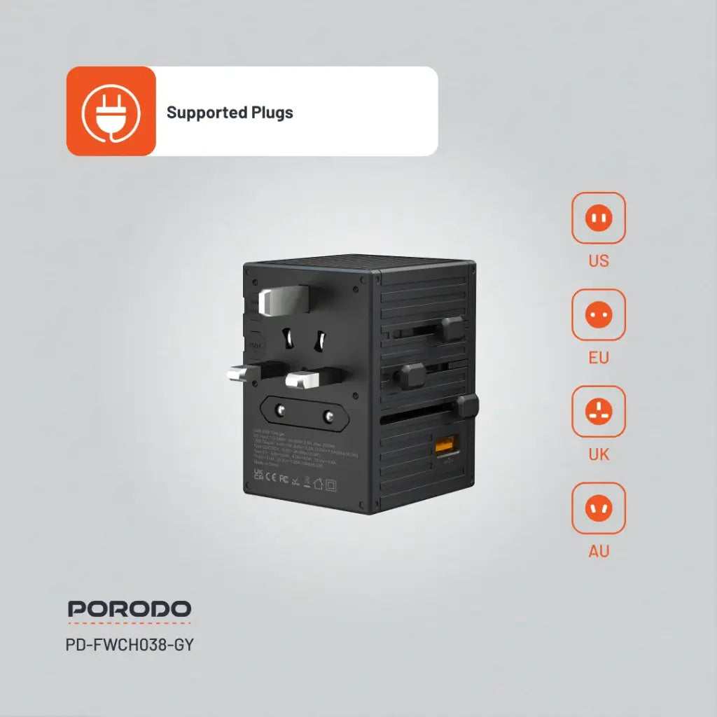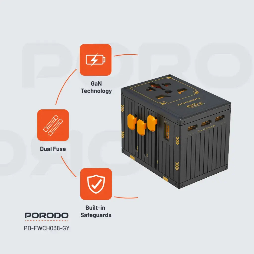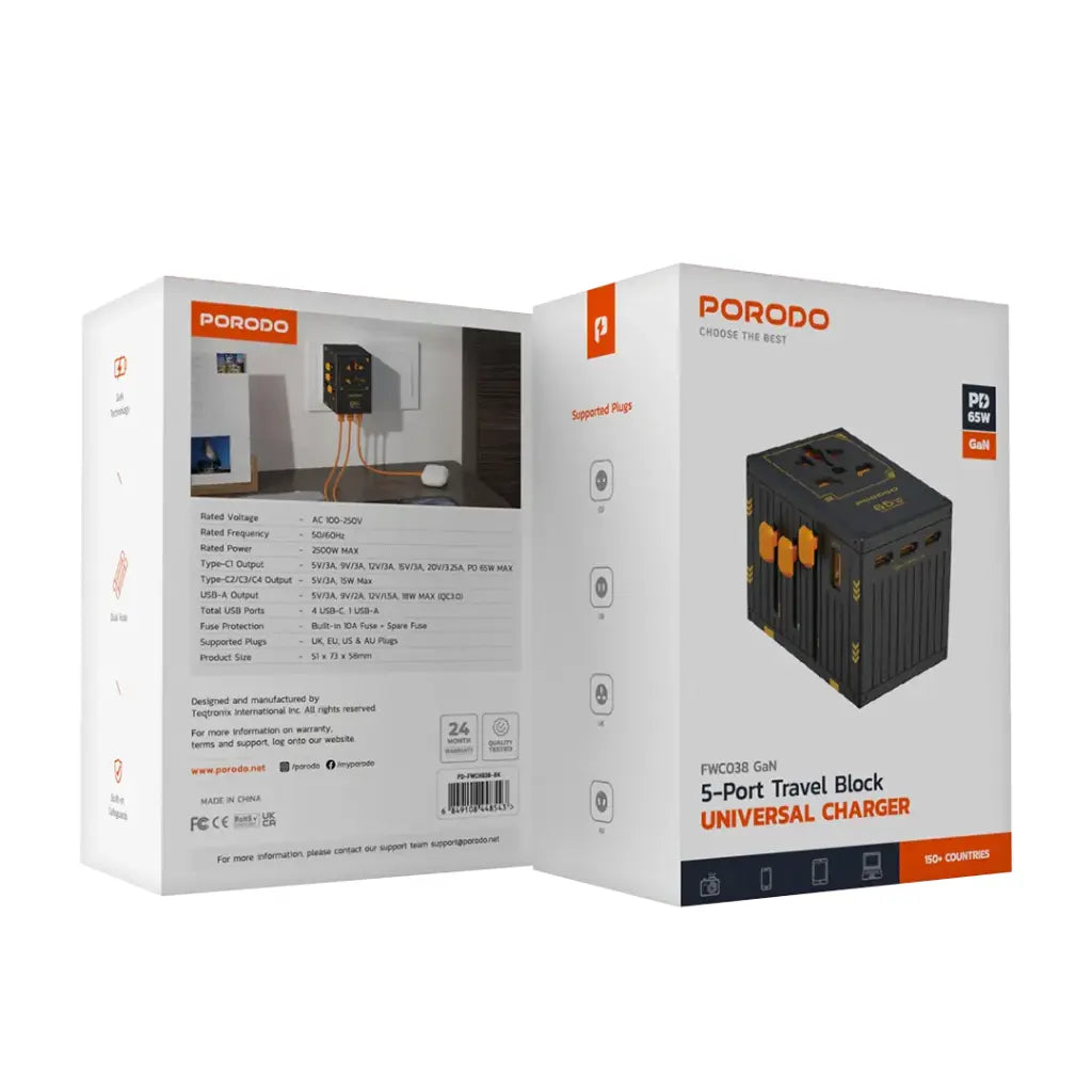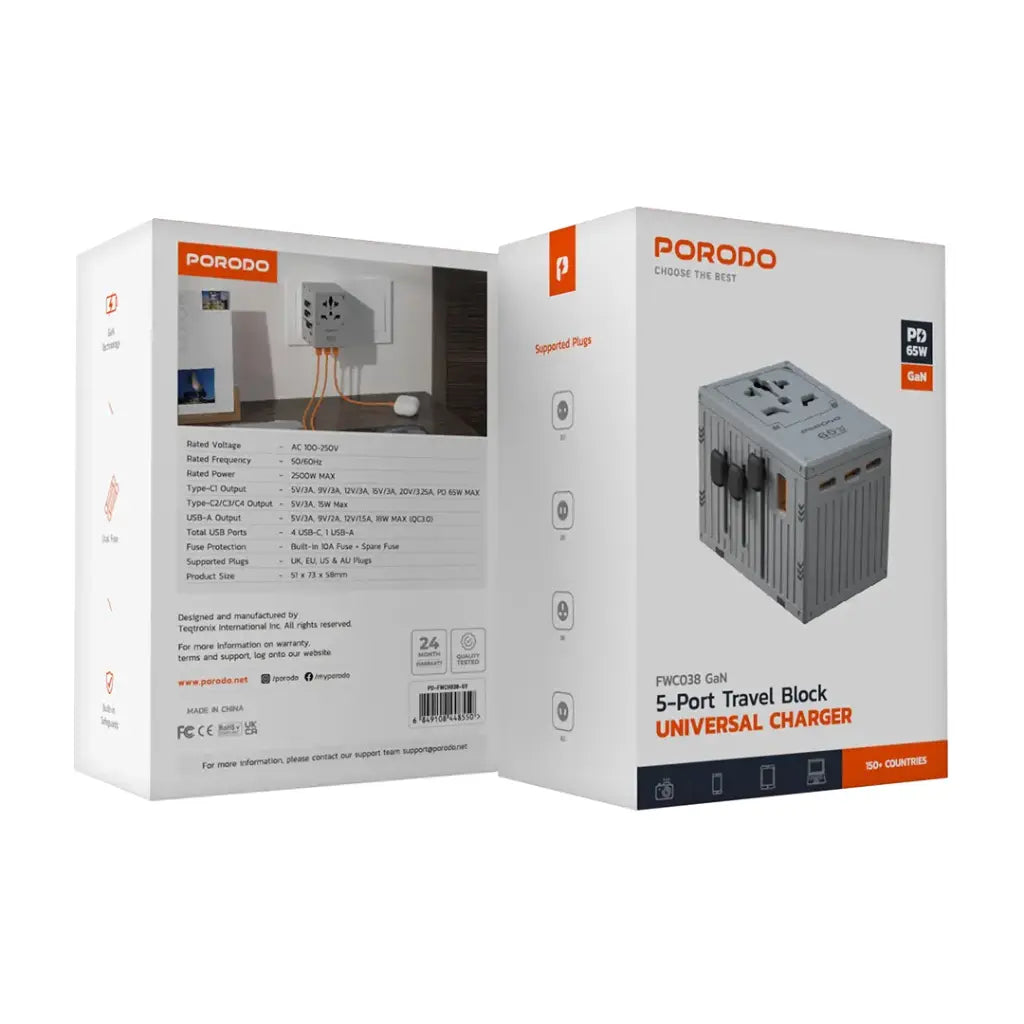 شاحن بورودو العالمي بخمسة منافذ للسفر بقوة 65 وات - FWC038