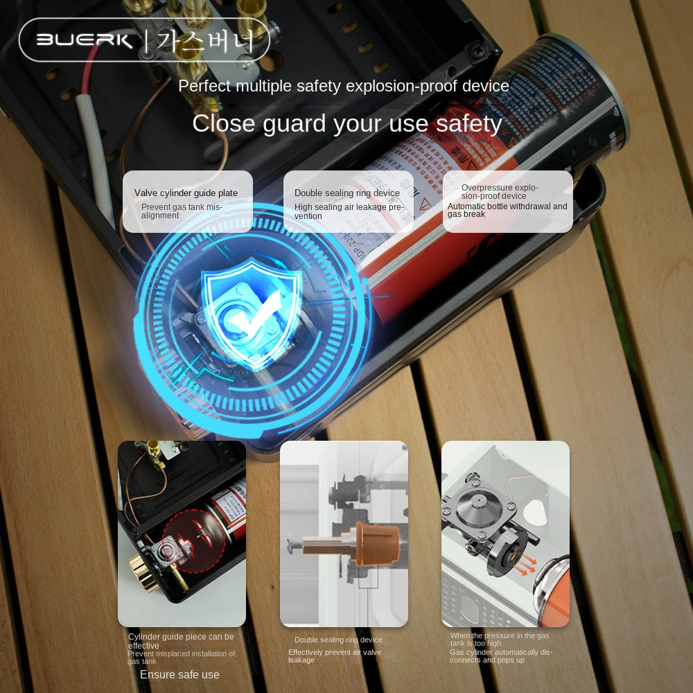 - Overpressure auto-disconnect — cuts gas flow for maximum safety